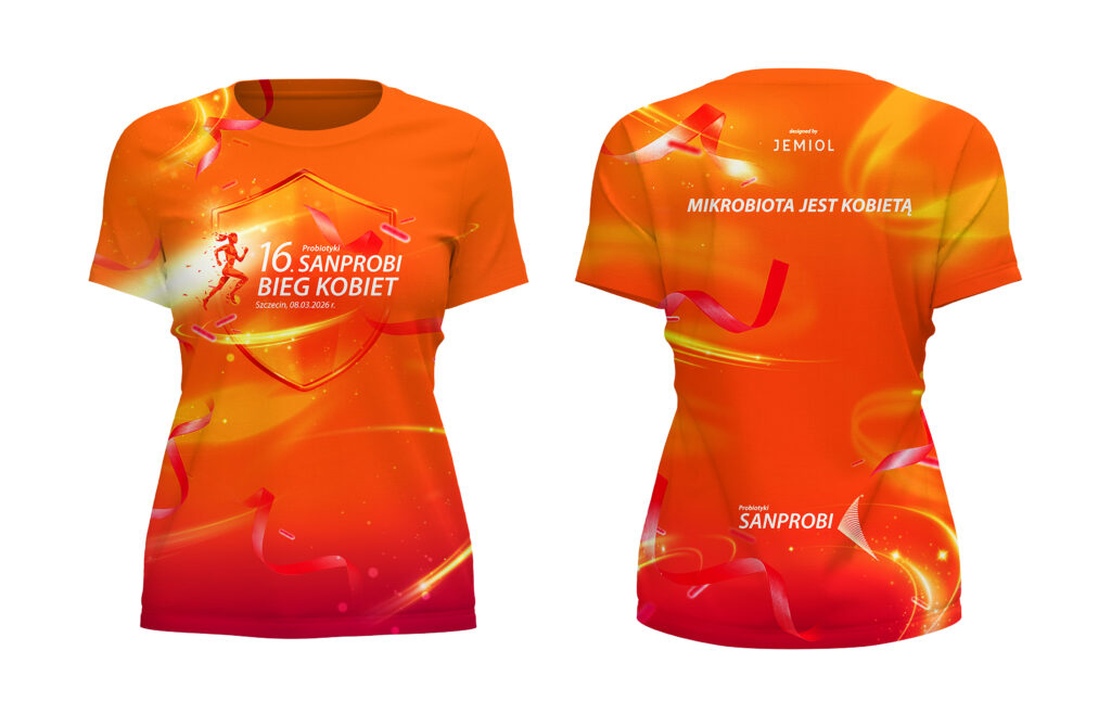 Energetyczne odcienie pomarańczowego? Idealne na tę edycję! Kolor koszulki, który kojarzy się z ciepłem, siłą, równowagą i życiową energią, doskonale wpisuje się w charakter SANPROBI Biegu Kobiet. Co więcej – jego tonacja nieprzypadkowo nawiązuje do najbardziej słonecznego opakowania w portfolio SANPROBI, czyli Immuno. Czyżby siła witaminy D?